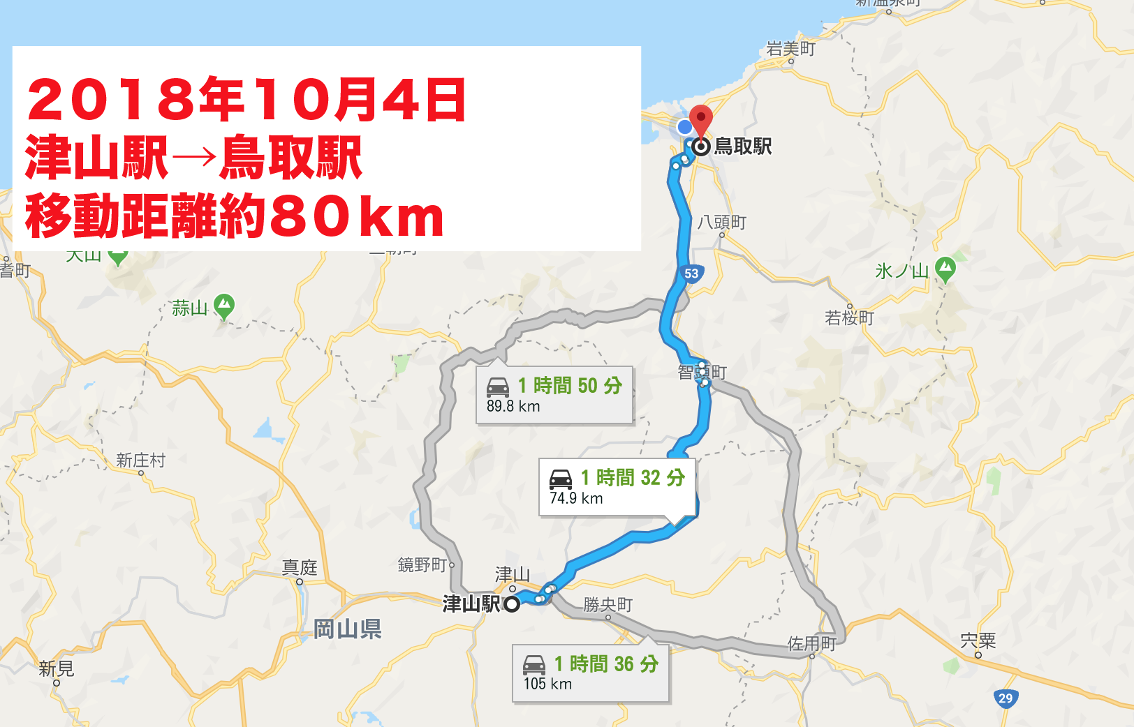 今日は、岡山から鳥取へ。